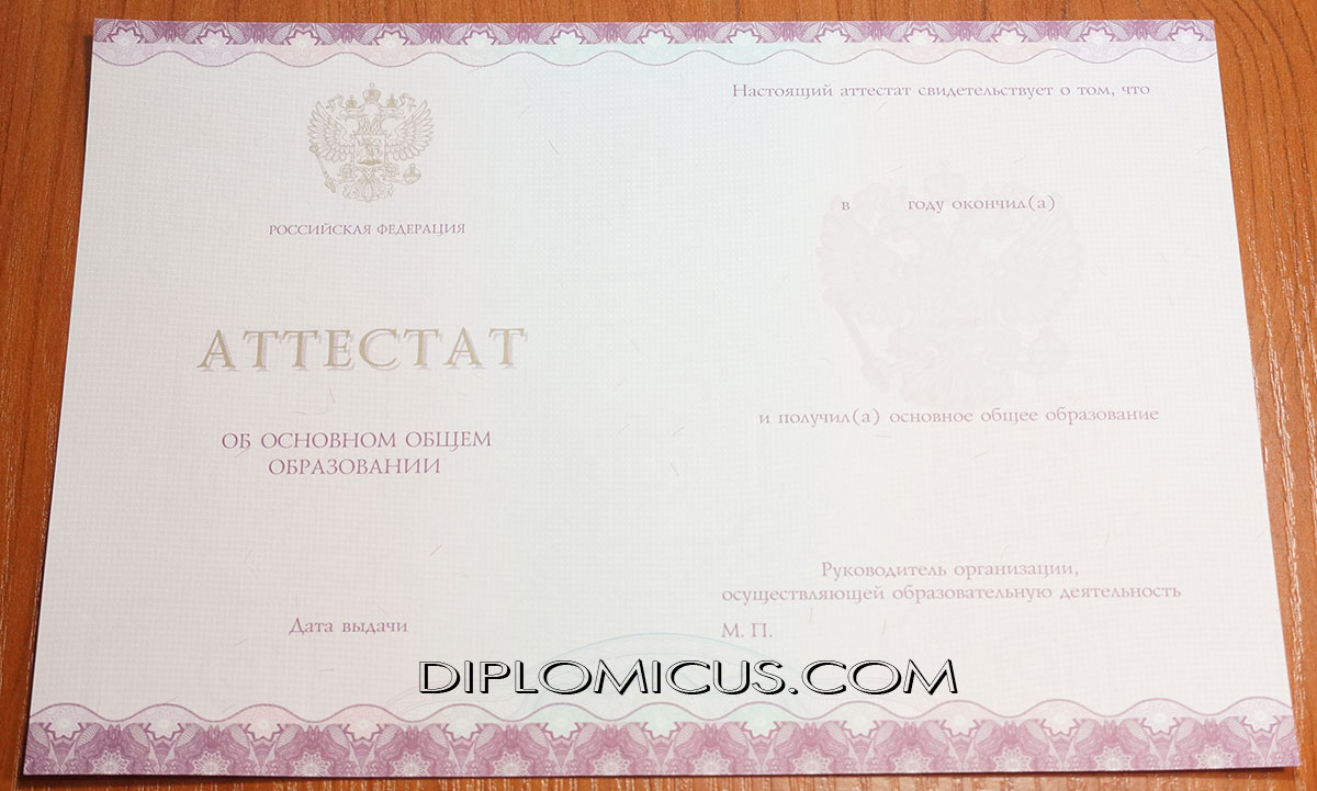 Аттестат о среднем образовании за 9 класс  <br /> 2014 - 2025 год